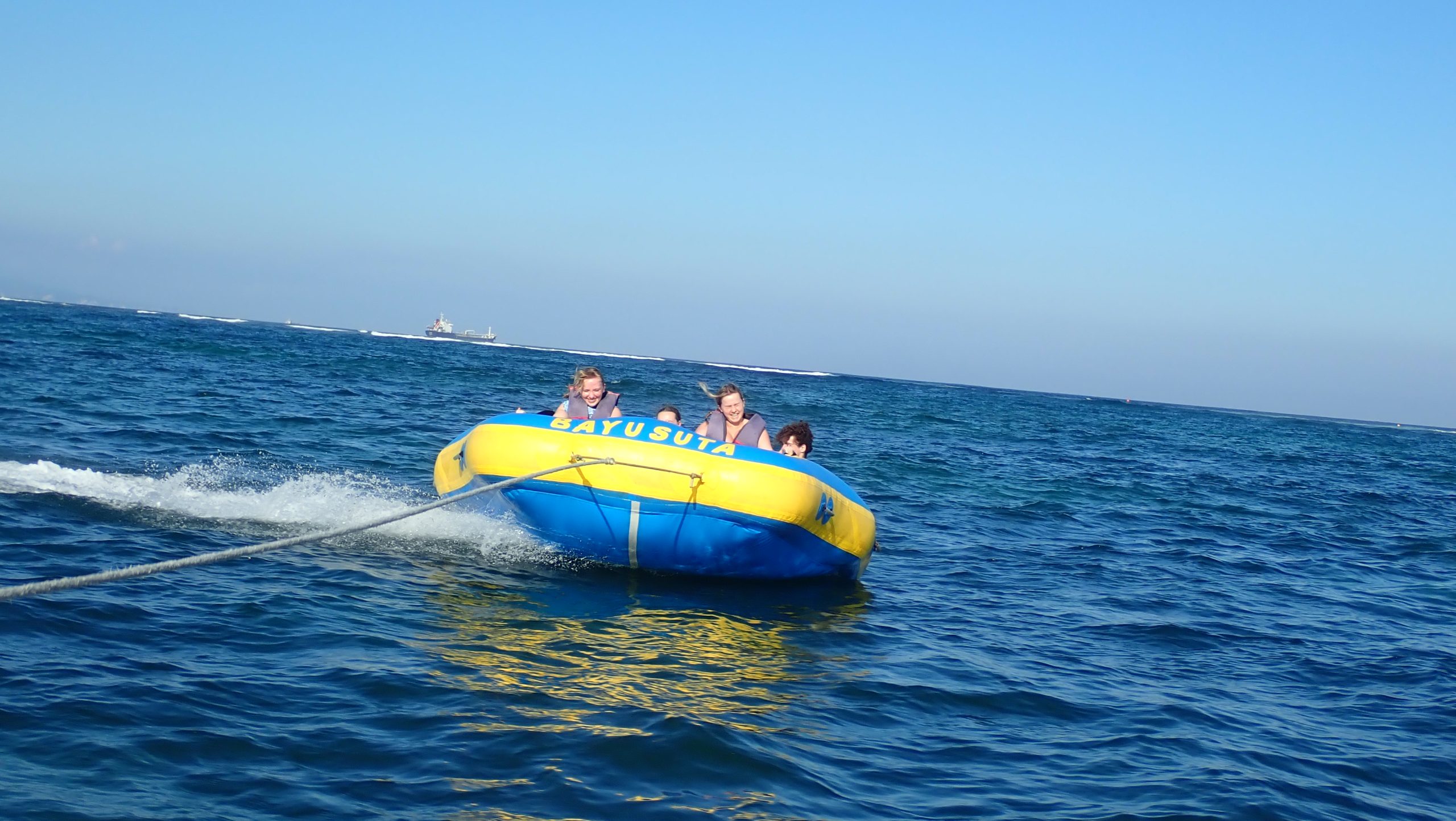 Permainan Rolling Donut Tanjung Benoa Bali, ini hampir mirip dengan Banana Boat tapi berbentuk Donut ditarik sama speedboat kemudian dibawa ke tengah laut dan sekali-sekali di tarik ulur berbentuk zig-zag dan diputar-putar ditengah laut.
